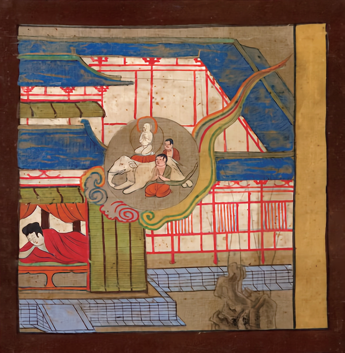 因此,莲花在随之而来的重要场景“佛陀的诞生”中,以一种飞跃形式进入母亲的子宫,这并不令人吃惊。佛本生故事就有释迦牟尼前生投胎为王子,成为莲花王子,登基后称莲花王的情节;对可爱的婴儿则有“莲花瓣一样的儿子”这样的赞美。“莲花瓣一样的儿子”既可形容出生时的释迦牟尼,又预言了未来的哪吒。在这种情形下,哪吒莲花化身的故事也就喷薄欲出,万事俱备,只欠中国的土壤了。