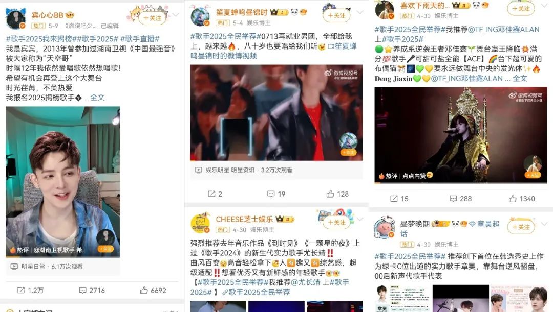 社交平台上依然有歌手不断发出报名信息,以表达自己想登上《歌手》舞台的心,也不断有网友在推荐自己认为可以登上舞台的歌手。或许比起最后的歌王之争,对于《歌手2025》来说,在首发阵容不尽如人意下,观众对于新血液和能力者的渴望更甚上一季,《歌手2025》在匹配好“流量”之后,选人能够再大胆一些、再精细一些。