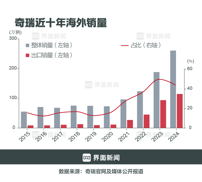 海外市场深耕多年的积累,让奇瑞有能力抓住三年前的中国汽车海外业务窗口期,迎来销量爆发。