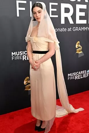 格雷西·艾布拉姆斯2月1日在格莱美前的造型(图片来源:Getty Images for The Recording