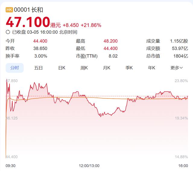 受此影响,长和股票在周三上涨 21.86% 的基础上,周四继续走高 9.13%。
