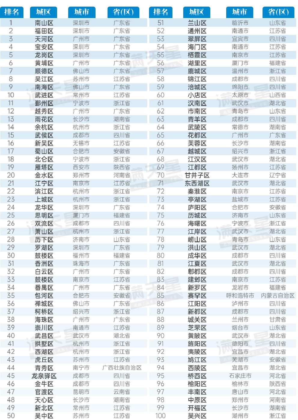 深圳南山区、深圳福田区、广州天河区、深圳宝安区、深圳龙岗区、广州黄埔区、佛山顺德区、苏州吴江区、佛山南海区、常州武进区。
