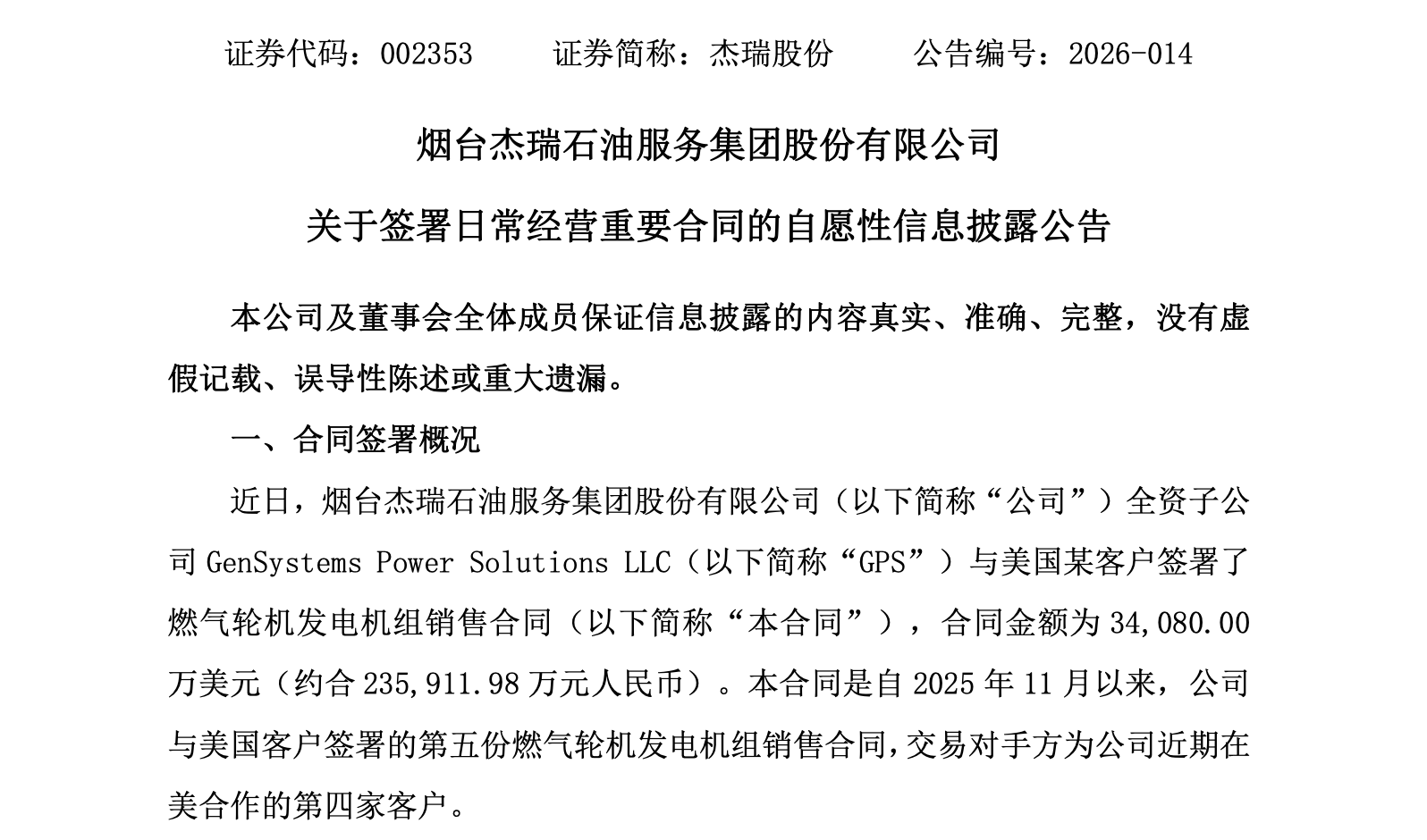 界面新闻记者|蒋习中国民营油服龙头杰瑞股份(002353.SZ)第五次斩获超亿元北美数据中心发电机组...