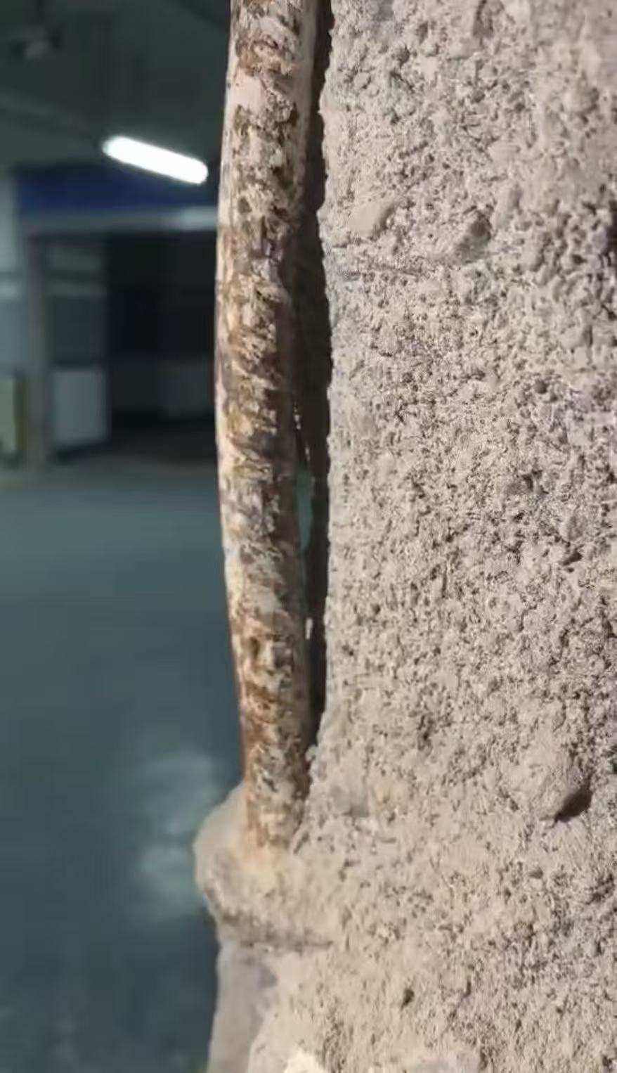 四川绵竹,新建小区英伦城邦交付不到一年,一业主发现地下室承重柱偷工减料严重,持续投诉半年后,姗姗来迟...
