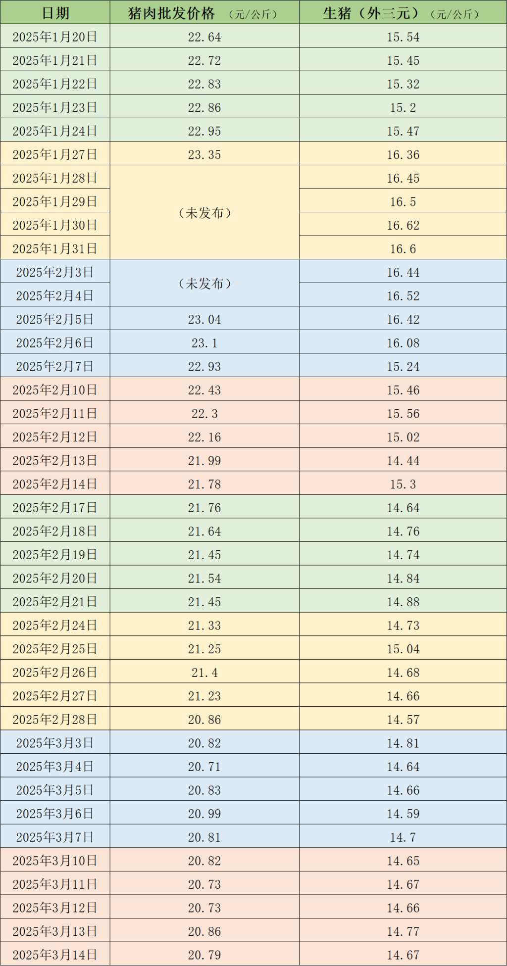 据农业农村部监测,3月14日,全国农产品批发市场猪肉平均价格为20.79元/公斤,与上周五(3月7日...