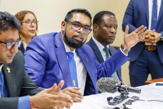 圭亚那,乔治城(美联社)——圭亚那总统周六谴责委内瑞拉武装军舰入侵有争议的海域,该海域是埃克森美孚正...