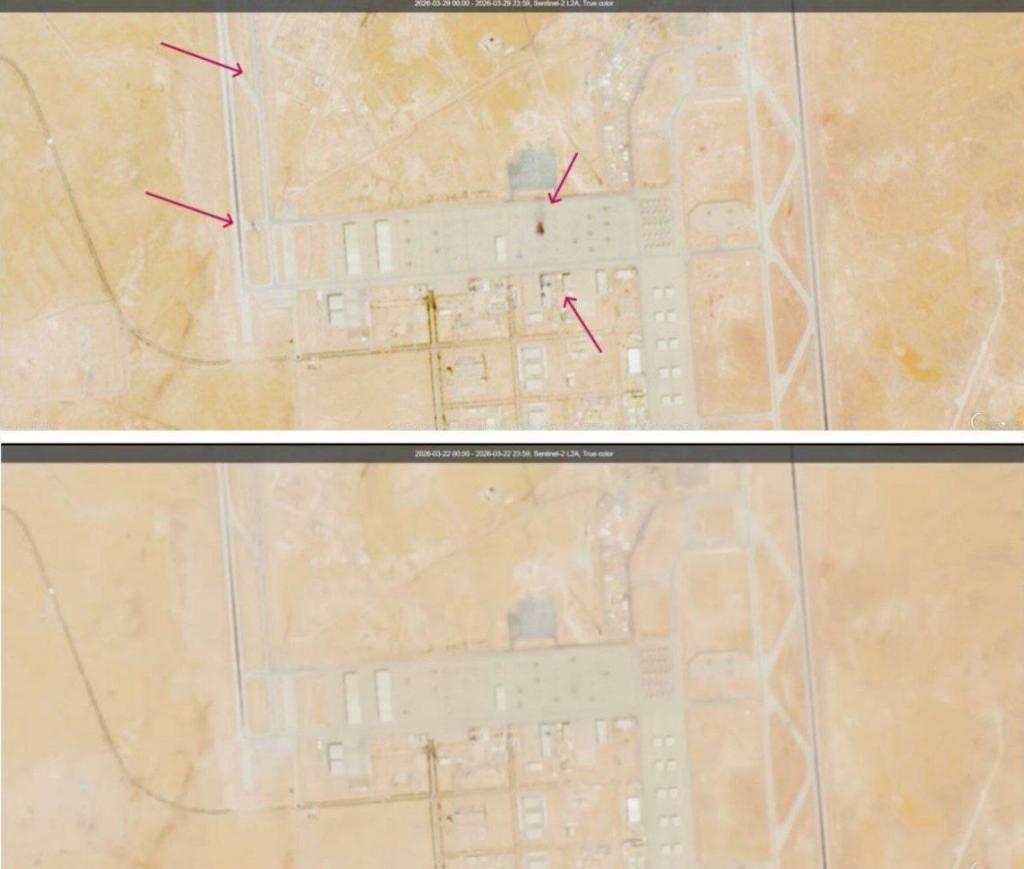 △伊朗方面发布打击沙特苏丹王子空军基地相关设施前后卫星对比图当地时间3月30日,伊朗方面发布卫星对比...