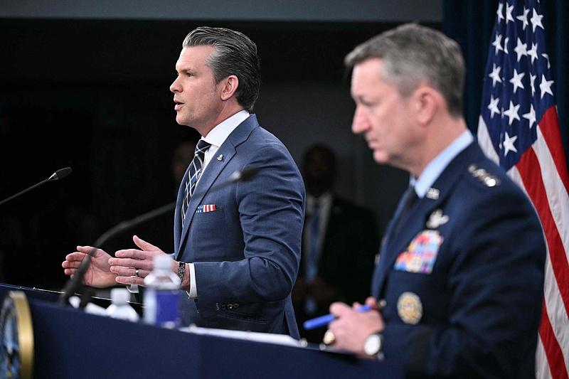 当地时间19日,美国国防部长赫格塞思与美军参谋长联席会议主席丹·凯恩就美国和以色列打击伊朗举行简报会...